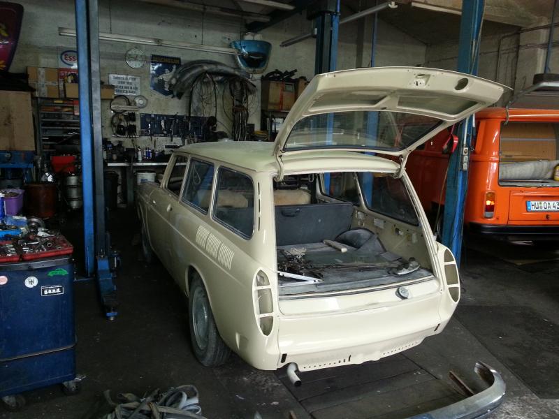 Damit war klar, das ist mein neuer Oldtimer. Natürlich hatten wir schon vorsorglich ein paar Anbauteile wie Nebelscheinwerfer, Nebelschlußleuchte, Radio und Antenne mitgebracht um den Vari sinnvoll zu pimpen. Ein großer Schönheitfehler war die verrostete und verbeulte Frontstoßstange. Hier musste unbeding Ersatz her. Leichter gesagt als getan. Hintere Stoßstangen liegen im Keller aber gute Vordere sind schwer zu bekommen. Hier half Kollege Zufall. Im bugnet habe ich eine Anzeige für Felgen gefunden, angemailt und nebenbei gefragt ob er eine vordere Stoßstange und eine AHK hat (Sabine sagt sonst ist es kein richtiger Variant). Volltreffer! Eine gut erhaltene Stoßstange zum guten Preis und eine AHK incl. Bleche. Da habe ich sofort zugeschlagen. Leider blieben die Felgen auf der Strecke (hat mein Konto gesagt) Am 10. Januar gekauft und am 11. zur sofortigen Montage nach Mühlheim gebracht.