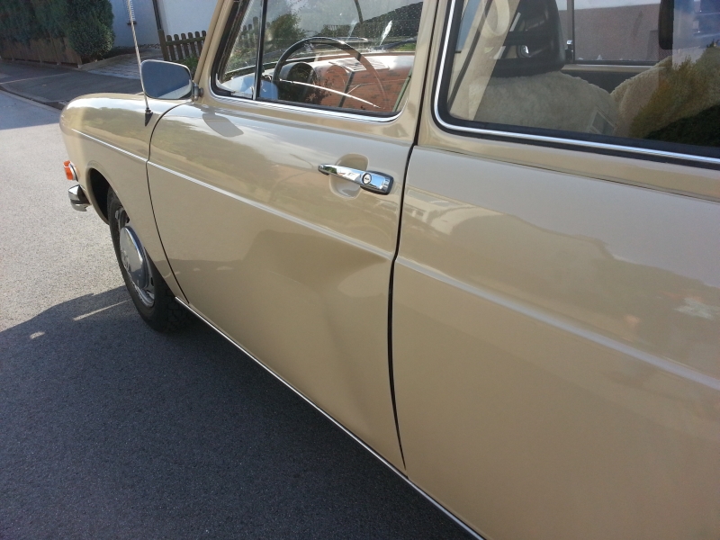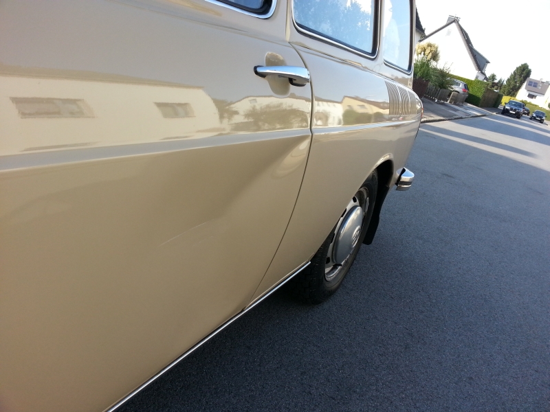 Das Ergebnis: Vom Lackieren zum Beulendoktor, zum nächsten Beulendoktor, zum nächsten Lackierer. Jeder Lackierer arbeitete mit einem Beulendoktor zusammen und jeder Beulendoktor wiederum mit einem andern Lackierer. Zum Schluß haben wir uns für einen Lackierer (bekannt aus dem Fernsehen) entschieden. Er ist nicht weit von uns weg und sagte "Alles kein Problem, nur eine Kleinigkeit.". Diese Kleinigkeit zog sich dann ca. 8 Wochen. Der Grund war, das er den Farbton nicht traf. Für uns ganz unverständlich, da der Wagen doch beim Kauf ein neues Farbkleid in seiner Auslieferungsfarbe L80Z bekommen hatte. Der Lackierer hatte 3 Probebleche L80Z von 3 Herstellern erstellt. Alle sahen anders aus und kein Farbton passte. Auch die Nachfrage beim Verkäufer, welcher den Lackierer kontaktieren sollte blieb zunächst erfolglos. Dann überschnitten sich die Ereignisse. Unser Lackierer holte endlich einen Vorführmeister, welcher den "exakten" Farbton bestimmte und die Farbe anmischte. Das erstellte Probeblech war ok. Also wurde der Schaden endlich in der "richtigen" Farbe lackiert. Gleichzeitig meldete sich der Verkäufer, entschuldigte sich das die Antwort so lange gedauert hat, und teilte uns mit das der Farbton auch L91D oder RAL 1015 sein könnte. Er hat auch noch einen Topf Restfarbe gefunden, den er uns zuschickt. Nachdem öffnen des Paketes kam der Farbeimer zum Vorschein. Und was stand groß auf dem Deckel? Na klar, L91D! Aber dies war wirklich L91D und nicht der Farbton in dem Dolf lakiert war.